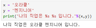 print('나의 직업은 %s %s 입니다.'%(x,y))