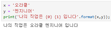 print('나의 직업은 {0} {1} 입니다.'.format(x,y))