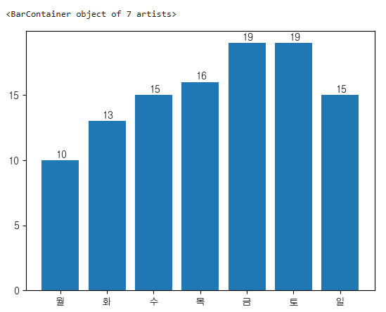 plt.text(i-0.1,week[i]+0.2,week[i])