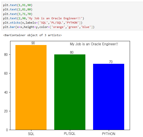 plt.text(2,90,'My Job is an Oracle Engineer!!')