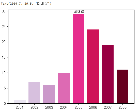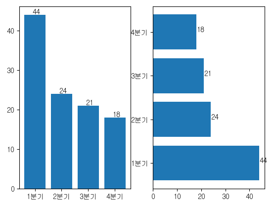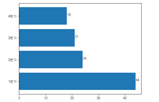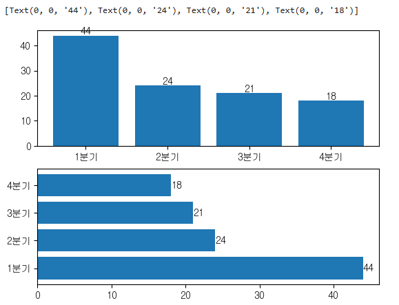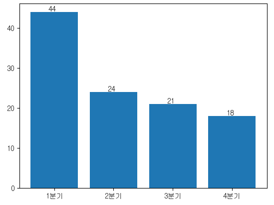 plt.text(i-0.1, quarter[i] + 0.2, quarter[i])