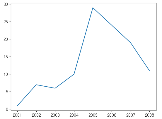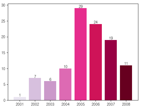 years = emp.HIRE_DATE.dt.year.value_counts()