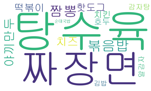 word = {'떡볶이':100,'감자탕':50,'순대국밥':10,'치즈':120,'치킨':70,'김밥':40,'짜장면':300,'야끼만두':150,'볶음밥':200,'핫도그':90,'호두':60,'알감자':50,'짬뽕':200,'탕수육':400}