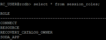 rc_user로 접속 후 부여받은 role 권한 확인
