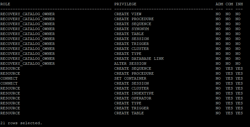 select * from role_sys_privs;