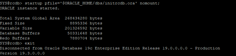 pfile='$ORACLE_HOME/dbs/initrcdb.ora'