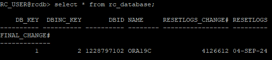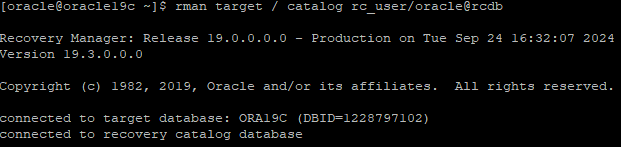 rman target / catalog rc_user/oracle@rcdb