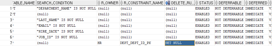 dept_id number CONSTRAINT emp_dept_id_fk REFERENCES dept(dept_id) ON DELETE SET NULL --FOREING KEY 제약조건을 열정의로 하려면 REFERENCE만 쓰면 된다.