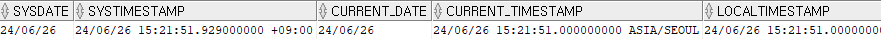 SELECT to_timestamp('2024-06-26 16:21:30.123456','yyyy-mm-dd hh24:mi:ss.ff') FROM dual; -- ss.ff 입력 시 자동으로 9자리 입력