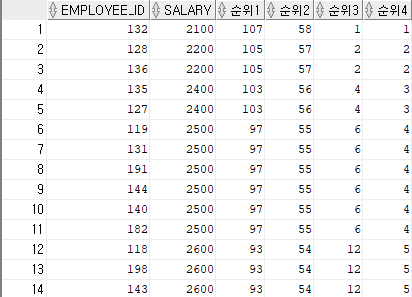 dense_rank() over (order by salary ) as 순위4
