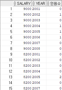select salary ,year,인원수 from temp_01 unpivot(인원수 for year in ("2001","2002","2003","2004","2005","2006","2007","2008"));