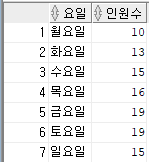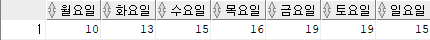 ('월요일' "월요일",'화요일' "화요일" ,'수요일' "수요일" ,'목요일' "목요일",'금요일' "금요일",'토요일' "토요일",'일요일' "일요일"));