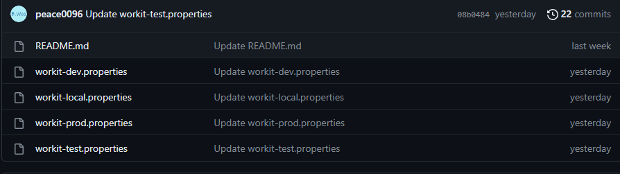 해당 Repository에서만 사용할 환경변수이다. 이 레포 안에서 공통적으로 사용할 변수들을 정리하면 된다. encrypt.key와 같은 정보들을 넣어주면 된다.