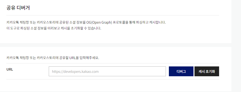 아래의 카카오 디버거 툴을 이용하여 URL캐시를 삭제할 수 있다.