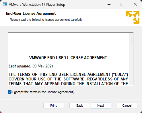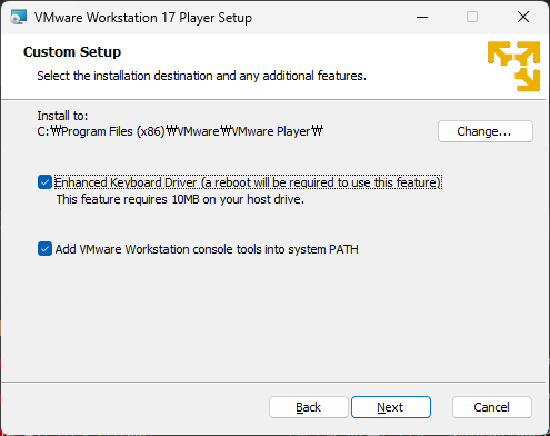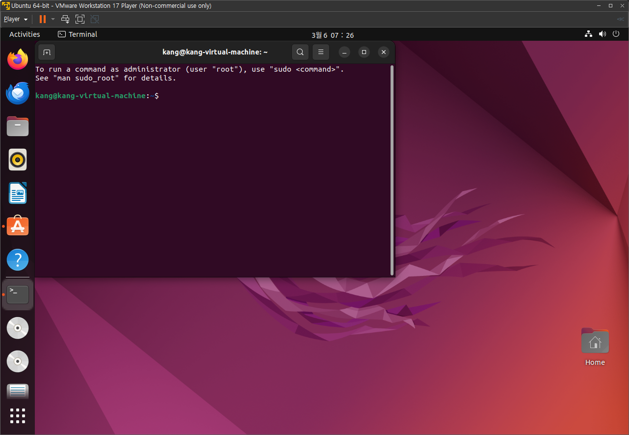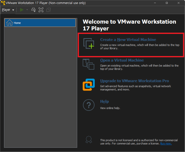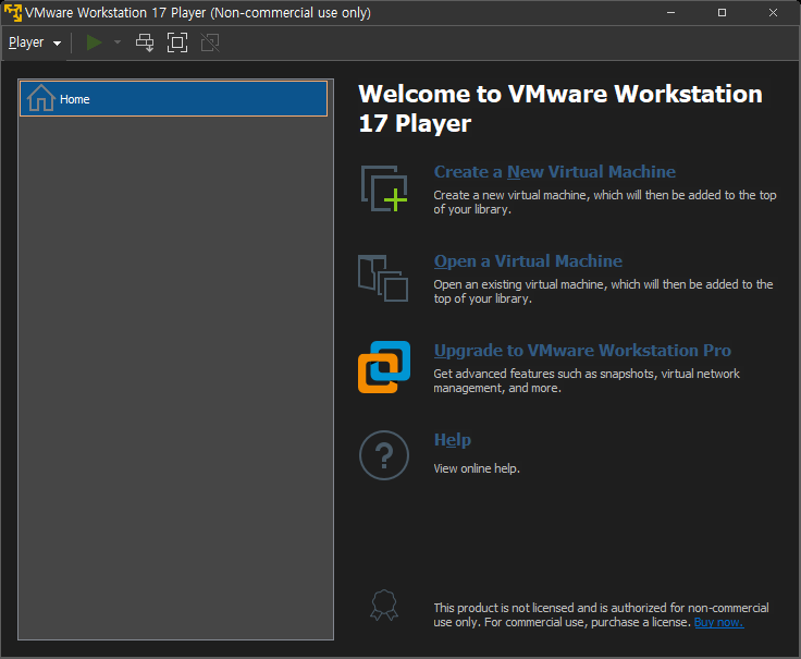재시작 완료 후 Vmware WorkStation Player를 다시 실행시키면 아래와 같이 나온다.