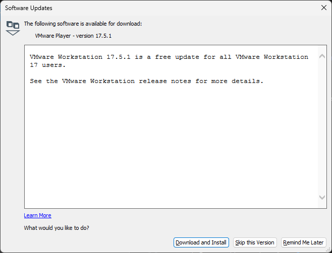 첫 실행이라 그런지 Vmware WorkStation Player업데이트가 진행이 먼저된다.