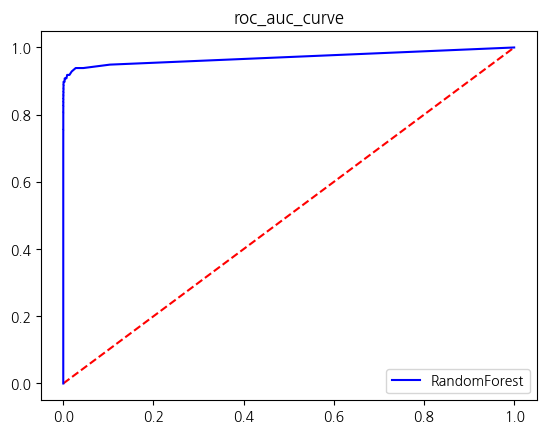 - RamdomForest의 경우 precision이 1.2정도 하락하고 recall이 0.1정도 올랐으나 f1은 떨어졌다 auc score는 0.05 증가