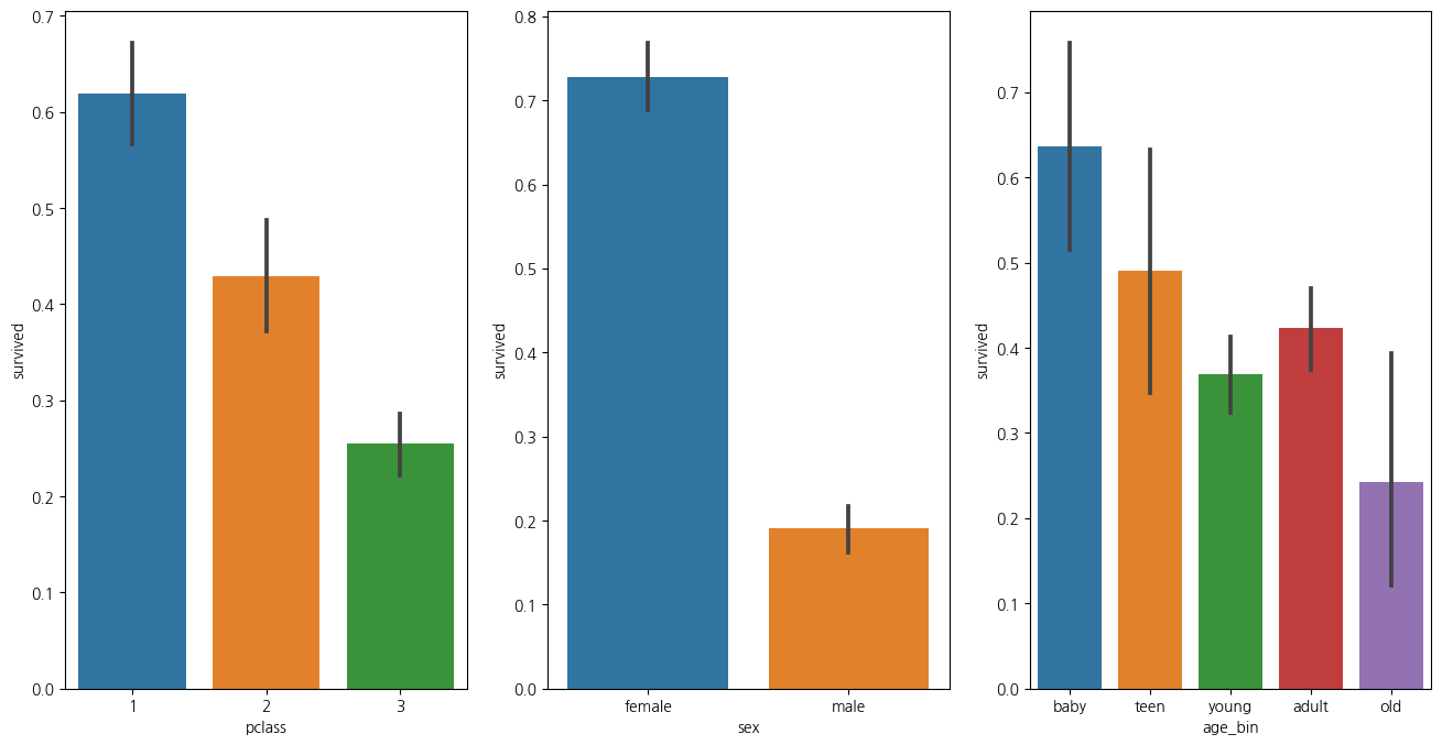 titanic_df['age_bin'] = pd.cut(titanic_df['age'], bins = [0,7,15,30,60,100],