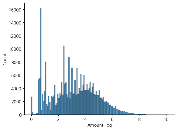 <Axes: xlabel='Amount_log', ylabel='Count'>
