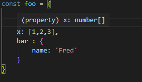 객체에서는 개별 속성을 살펴봄으로써 타입스크립트가 어떻게 각각의 속성을 추론하는지 살펴볼 수 있다. 위 코드에서 만약 x가 튜플 타입([number, number, number]) 이어야 한다면, 타입 구문을 직접 명시해줘야 한다.