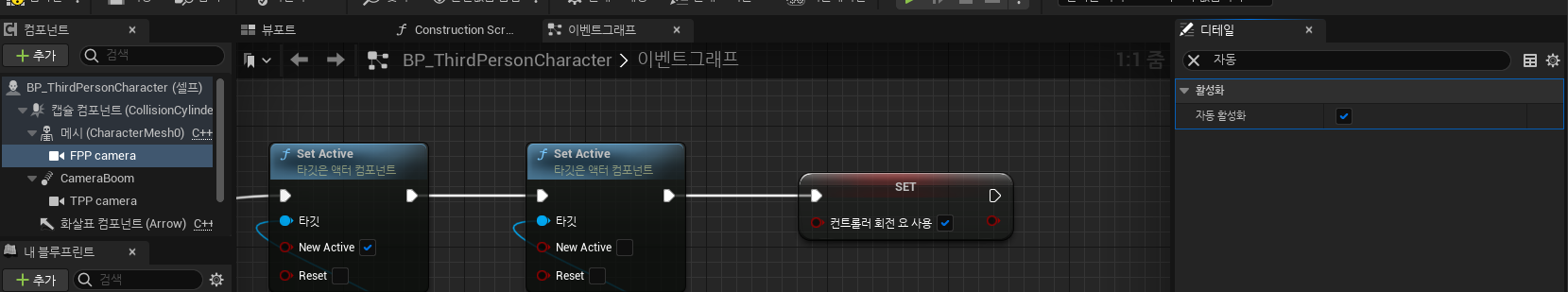 TPP camera 가져오기 > Is Active 노드 > branch 노드 연결