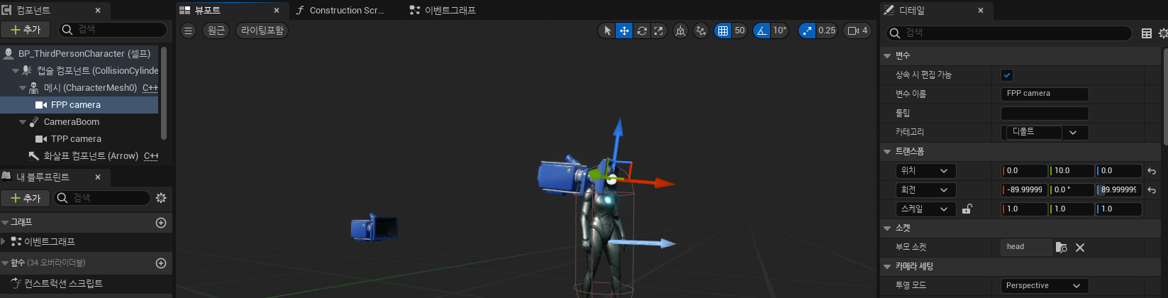 여기까지 진행했다면 플레이했을 때 1인칭 3인칭 변환은 잘 된다