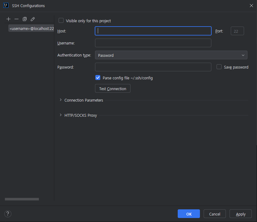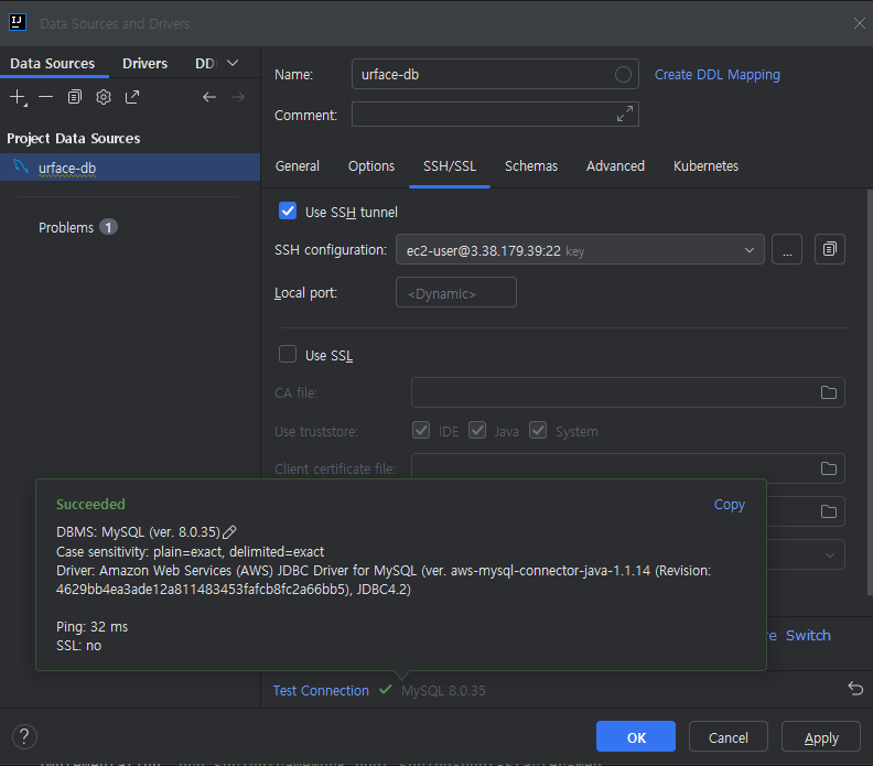 ํด๊ฒฐ ๋ฐฉ๋ฒ์ SSH/SSLํญ์์ Use SSh tunnel์ ํด๋ฆญํด์ ์ค์ ์ ํด์ฃผ๋ ๊ฒ์ด๋ค. ์ด๊ฒ์ bastonhost๋ฅผ ํตํด์ ๋ง๋ค์ด ์ฃผ๊ฒ๋ค.