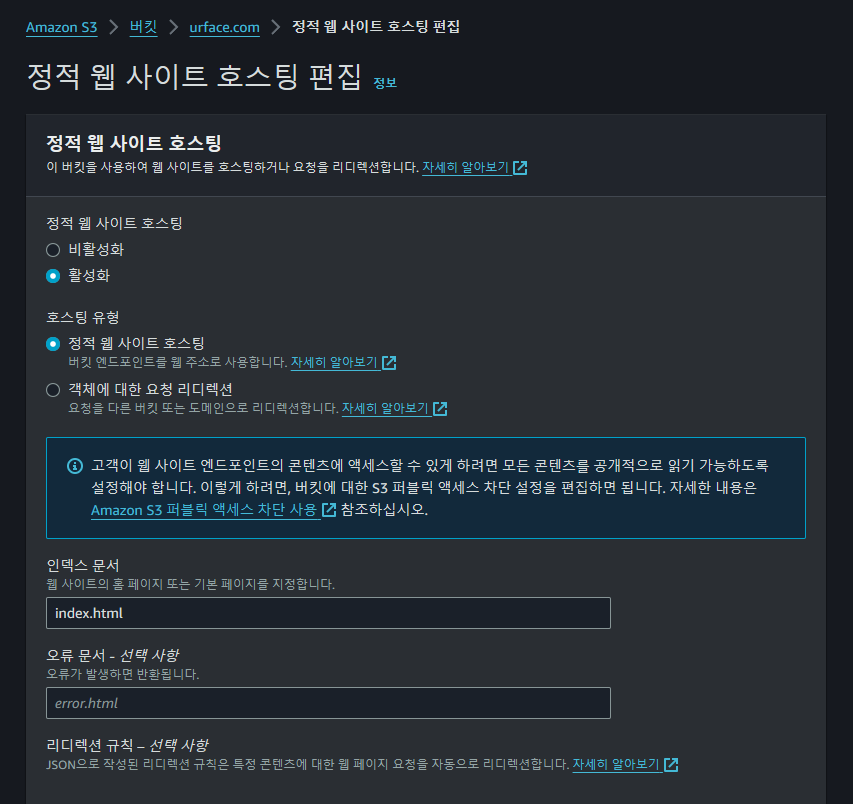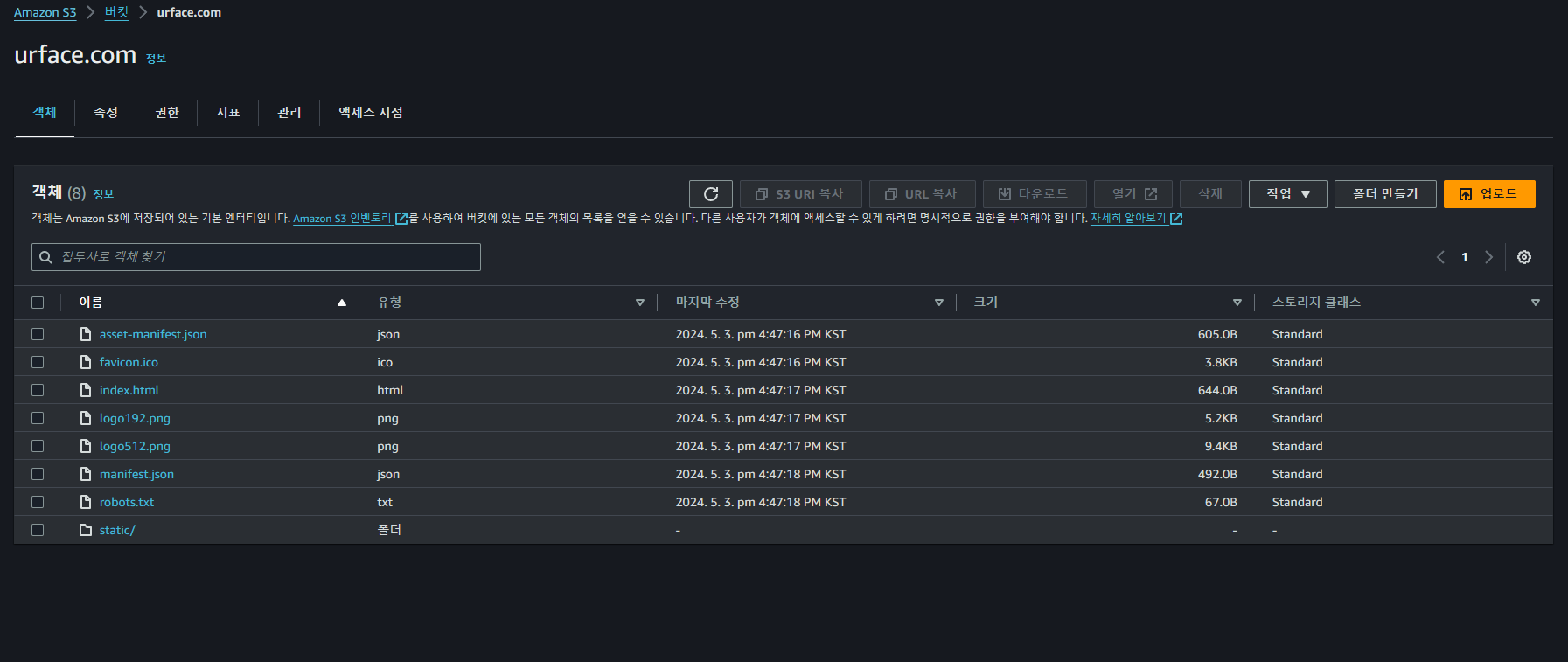 build ๋ด์ ํ์ผ๋ค์ S3์ ๋ง๋ urface.com์ ์