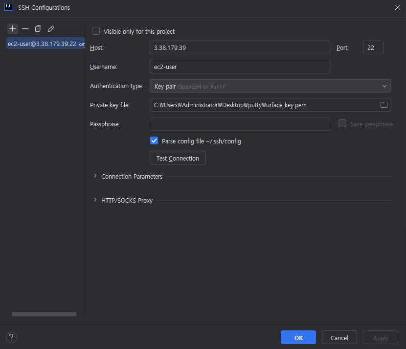 ๋ฌผ๋ก ๋ด๊ฐ ๊ฐ์ง Key์ ์์น๋ฅผ Connection\SSH\Auth\Credentials์์ ์์ฑํด์ฃผ๋ ๊ณผ์ ์ด ์๋ค.
