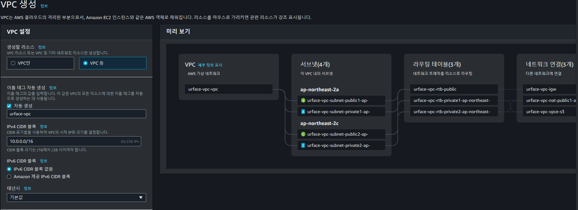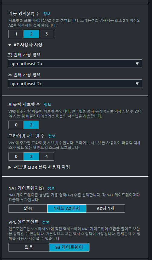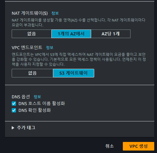 ์ด์ VPC๋ฅผ ์์ฑํด์ฃผ์.