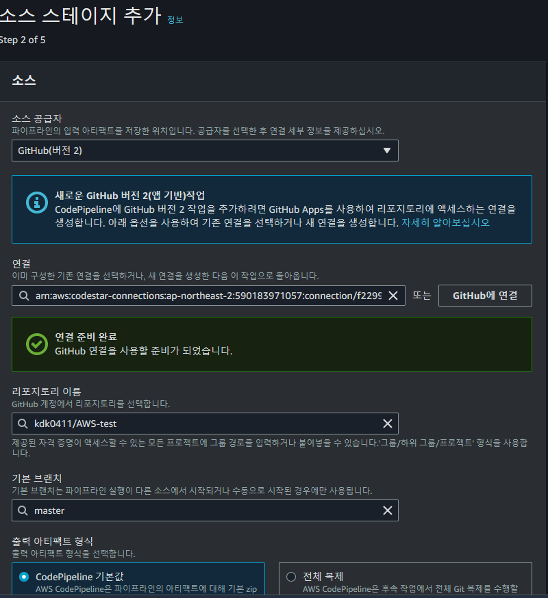๋จผ์ CodePipeline์ ๊ตฌ์ฑํด์ฃผ์.