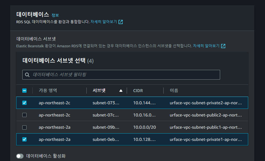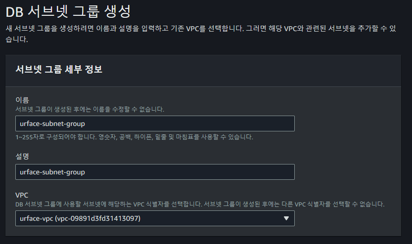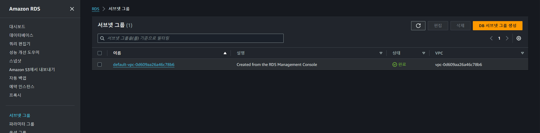 ์ด์ DB๋ฅผ ๊ตฌ์ฑํด๋ณด์ ๋จผ์ ์๋ธ๋ท ๊ทธ๋ฃน์ ๋ง๋ค์ด์ฃผ์.