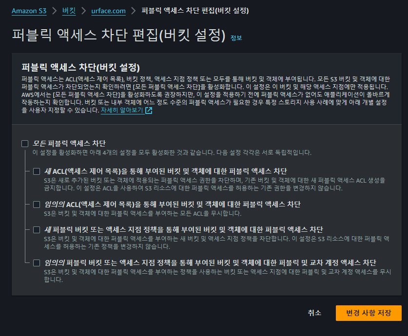 ์ด์ ํผ๋ธ๋ฆญ ์ก์ธ์ค ์ฐจ๋จ(๋ฒํท ์ค์ )์ ํธ์งํด์ฃผ์ด์ผ ํ๋ค.
