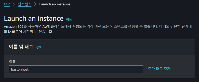 ์ด์ ์ด ์๋ฒ๋ก ์ ์ํ ์์๋ Baston host ์ญํ ์ ํ ์ ์๋ EC2๋ฅผ ํ๋ ๋ง๋ค์ด์ฃผ์.