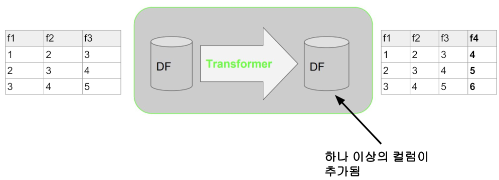 Input DataFrame์ ์ปฌ๋ผ์ผ๋ก๋ถํฐ ์๋ก์ด ์ปฌ๋ผ์ ๋ง๋ค์ด๋ด ์ด๋ฅผ ์ถ๊ฐํ ์๋ก์ด DataFrame์ ์ถ๋ ฅ์ผ๋ก ๋ด์ค๋ค. ๋ณดํต Feature Engineering์ ํ๋๋ฐ ์ฌ์ฉํ๋ค.