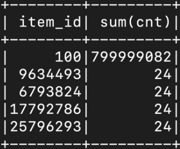 SELECT CASE WHEN rand() < 0.8 THEN 100 ELSE CAST(rand()* 30000000 AS INT) END AS item_id,