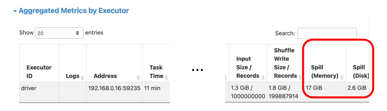 ๊ฒฐ๊ตญ Spill(memory)์ Spill(disk)๋ ๊ฐ์ ๋ฐ์ดํฐ๋ฅผ ๊ฐ๋ฆฌํค๋๋ฐ ํ๋๋ ๋ฉ๋ชจ๋ฆฌ์ ์์ ๋์ ํฌ๊ธฐ์ด๊ณ ๋ค๋ฅธ ํ๋๋ ๋์คํฌ์ ์์ ๋์ ํฌ๊ธฐ์ด๋ค