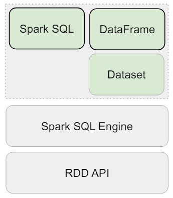 | What? | Distributed collection of records (structured & unstructured) | RDD organized into named column | Extension of data frame |