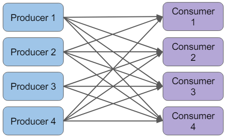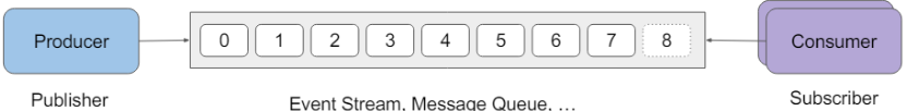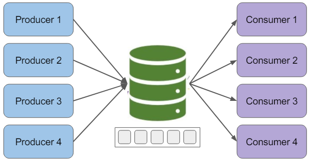 -> ์ค๊ฐ์ ๋ฐ์ดํฐ ์ ์ฅ์๋ฅผ ๋๊ณ ์์ฐ์์ ์๋น์๊ฐ decouple๋ ์ํ๋ก ์์