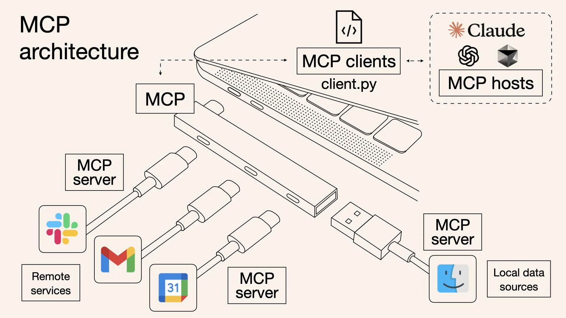 - 과거엔 각 데이터 소스마다 직접 연동 코드를 작성해야 했지만, MCP를 사용하면 하나의 프로토콜로 다양한 연결 가능