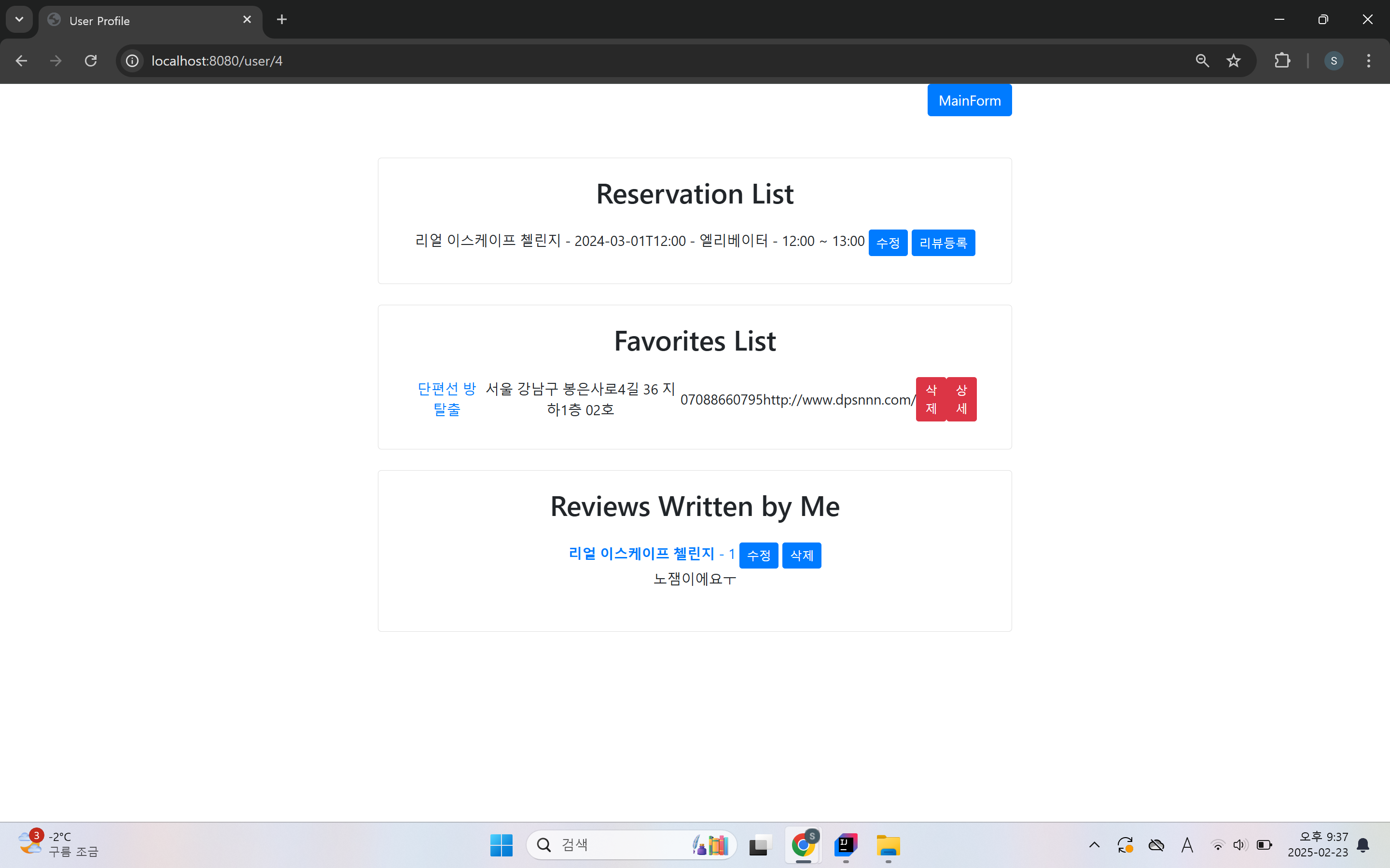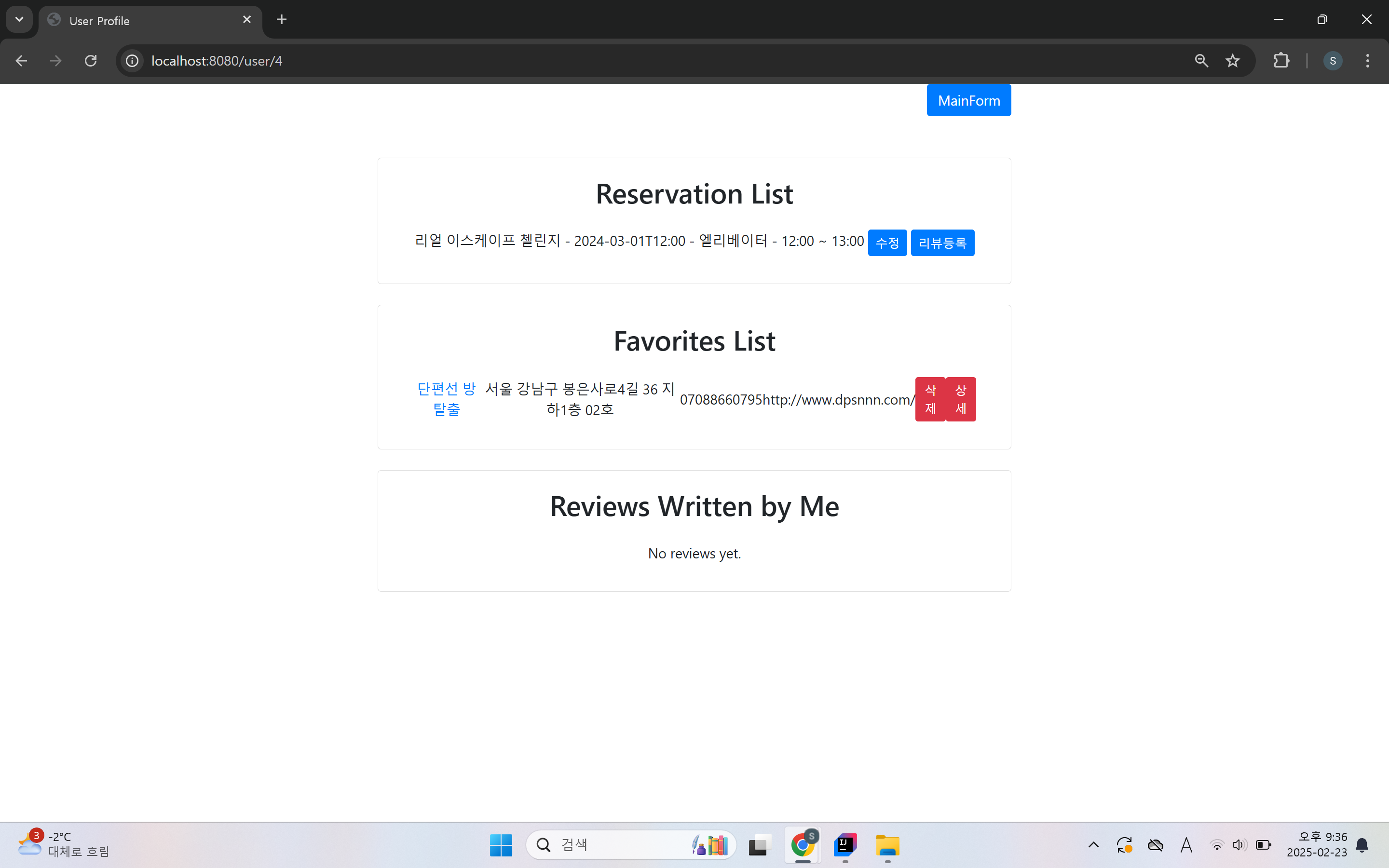 - 예약 및 리뷰 기능 구현