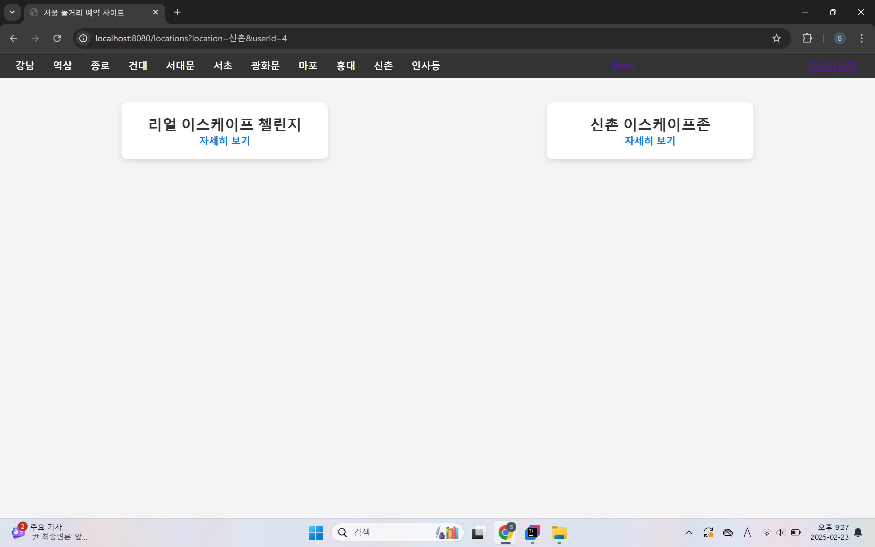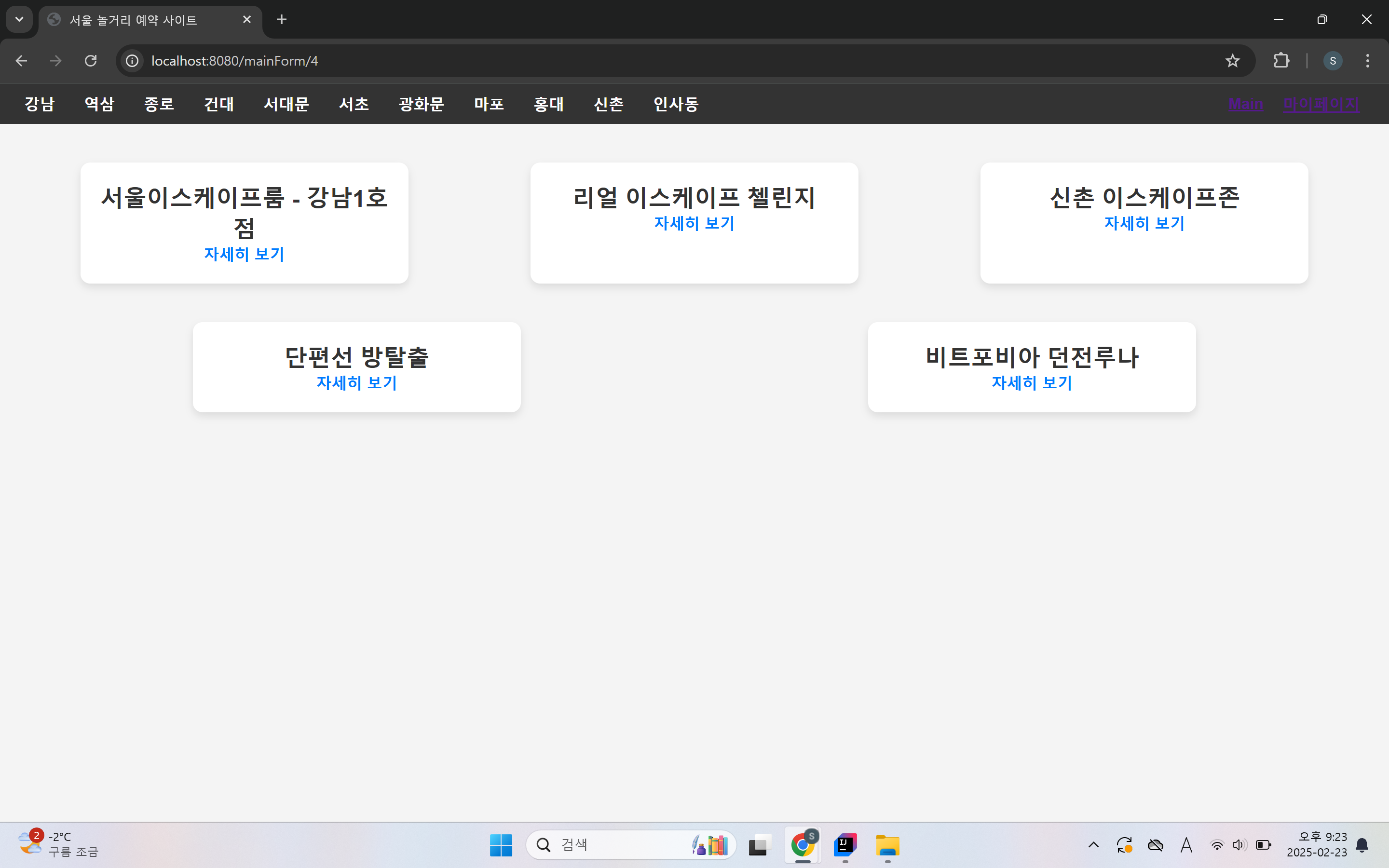 선택한 지역에 맞는 방탈출 카페 목록을 보여줍니다.