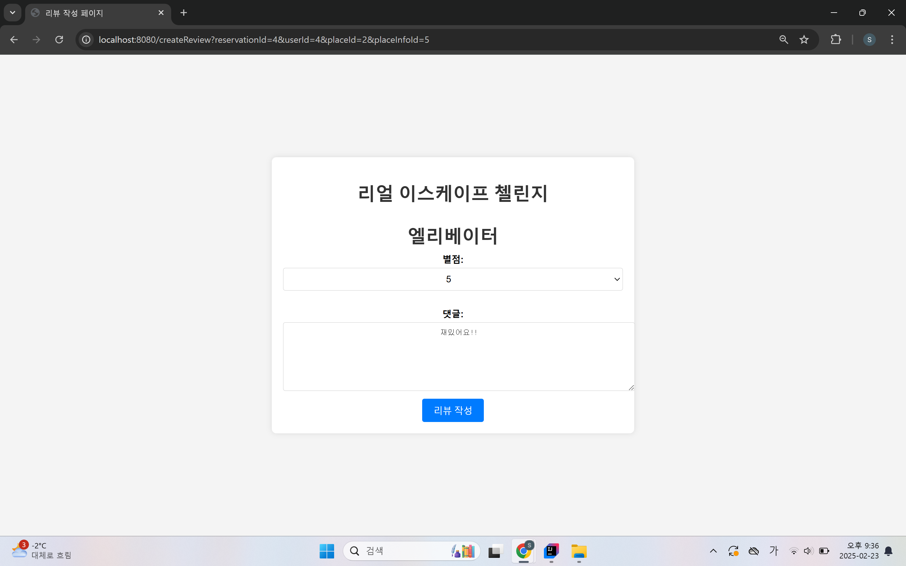 - 1~5 사이의 별점 선택이 가능하고, 리뷰 작성이 가능합니다.