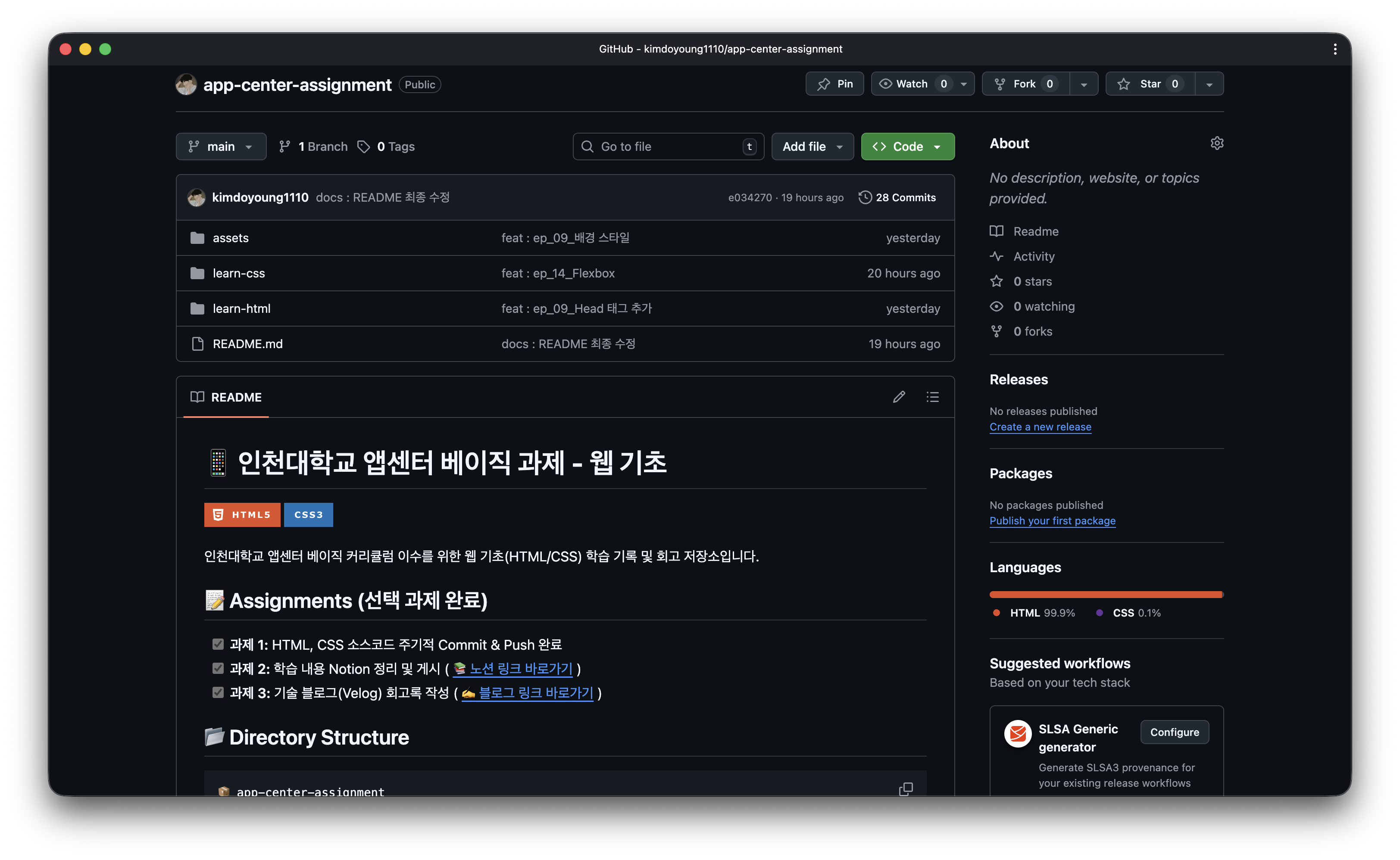 인천대학교 앱센터 베이직 과제를 통해 제공된 HTML/CSS 기초 강의는 저에게 아주 좋은 자극이 되었습니다. 단순히 태그의 이름을 외우고 어떤 기능을 구체적으로 갖고 있는지에 대해 알 수 있었습니다. 과거에 겪었던 레이아웃 붕괴나 성능 저하의 원인을 기술의 근본에서 찾아볼 수 있었던 뜻깊은 시간이었습니다.