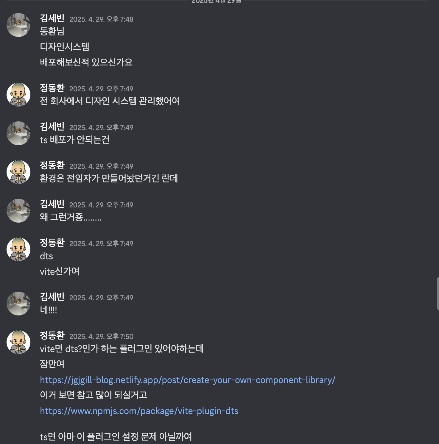 처음엔 “dts? 그냥 플러그인 이름인가 보다~ “하고 넘겼는데, 이제는 dist에 .d.ts 파일이 생겨야 한다는 걸 알고 나니까 이름 자체가 너무 직관적으로 느껴지네요. 이래서 뭔가를 ‘제대로’ 알아야 한다는 말이 괜히 있는 게 아니구나 싶었습니다.