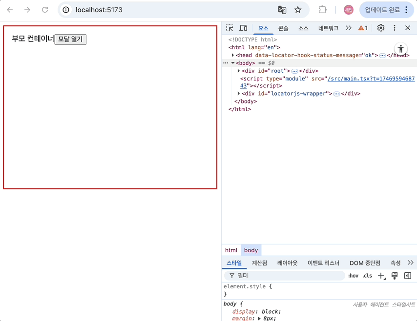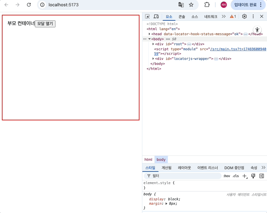 이러한 동작 덕분에, 모달 컴포넌트를 루트 외부에 렌더링하더라도 상위 컴포넌트에서 손쉽게 이벤트를 감지하고 제어할 수 있습니다. 특히 외부 클릭으로 모달을 닫는 로직이나, 이벤트 위임 기반의 인터랙션 구현 시 유용합니다.