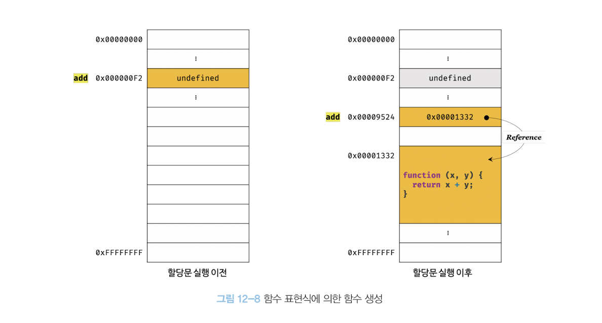 함수 선언문 이전에 호출하면, 암묵적으로 생성된 식별자는 함수 객체로 초기화된다.