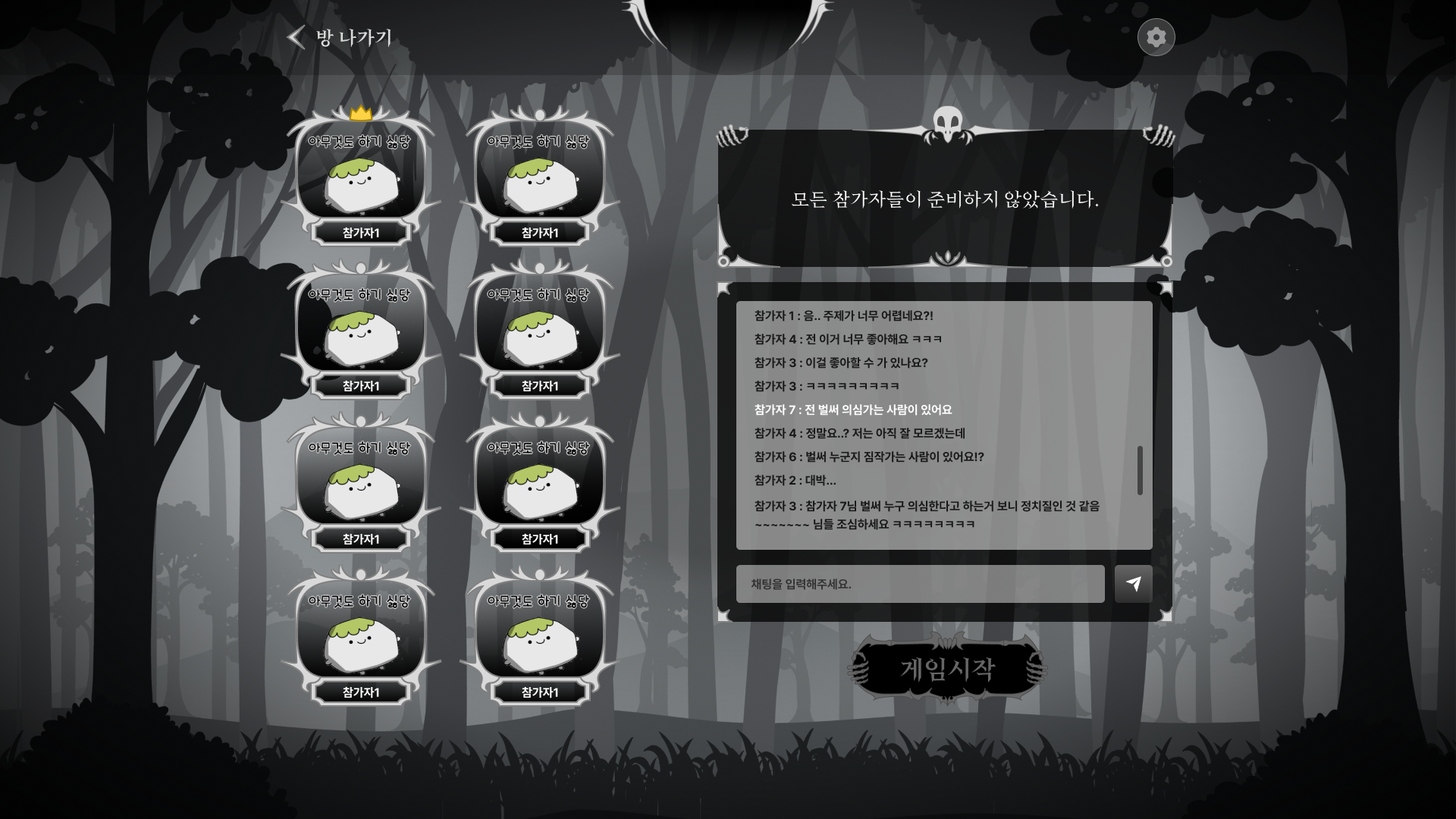 위와 같이 게임방을 들어가게 되면 참가자들이 이용할 수 있는 채팅으로