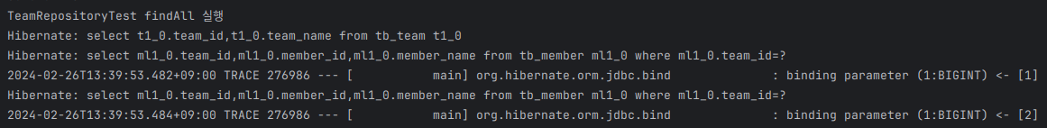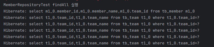 select m1_0.member_id,m1_0.member_name,m1_0.team_id from tb_member m1_0 한번만 실행된다.