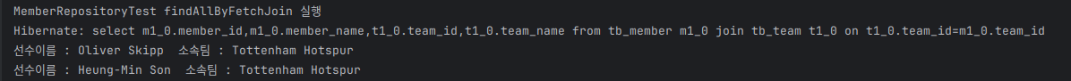 System.out.println("선수이름 : "+member.getMemberName() + " 소속팀 : " +member.getTeam().getTeamName());